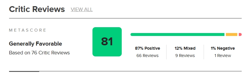 不过问题也随之而来,既然玩家在首日就发现了大量问题,那么按理说游玩更加深入的广大游戏媒体,为何好像对这些极为显眼的问题表现得毫不在意呢?根据评分站 Metacritic 的汇总,76 家参与了对《文明7》评测的游戏媒体为其给出 81 分的总评分,尽管这一分数在系列正作里垫底。